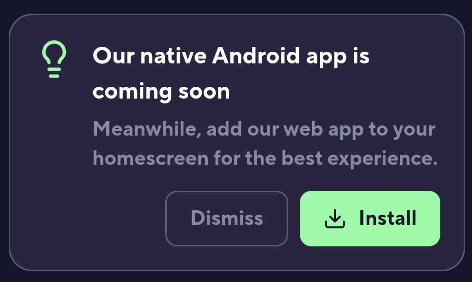 ℹ️ Please note that the "Our Native App is coming Soon" modal will disappear automatically once you begin the installation process:
