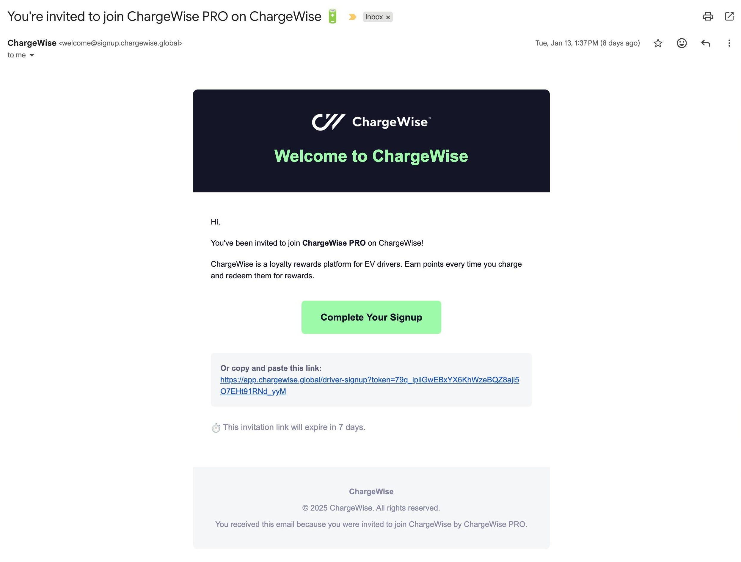 Users who are targeted will receive an automated message via 2 communication channels - the provided e-mail address and an in-app push notification delivered by the app that the operator is using to enable you to start/stop charging on their network.